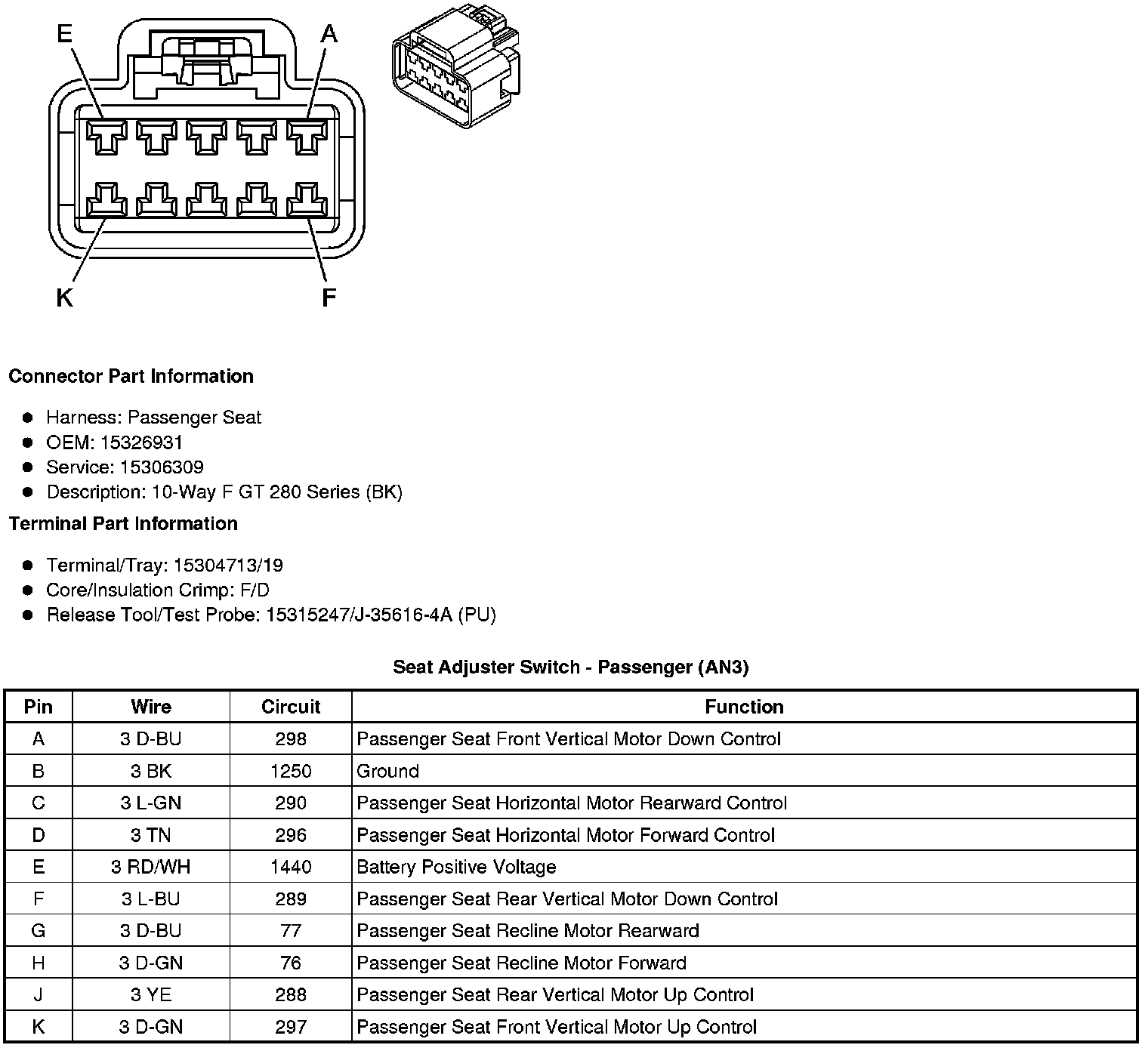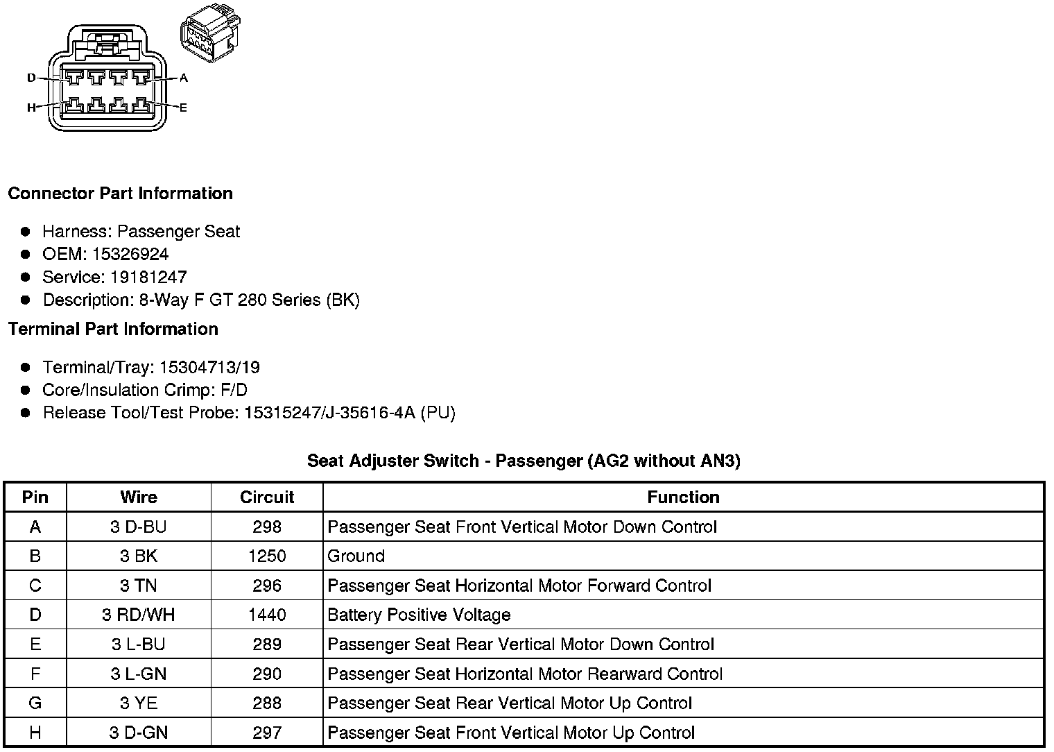Seat Adjuster Switch - Passenger (AG2 without AN3)