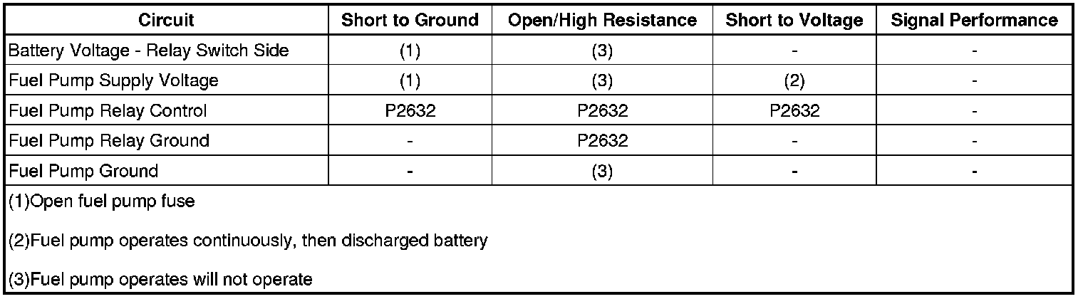 The control module monitors the voltage on the secondary fuel pump relay control circuit. If the control module detects an incorrect voltage on the secondary fuel pump relay control circuit, a fuel pump relay 2 control DTC sets.