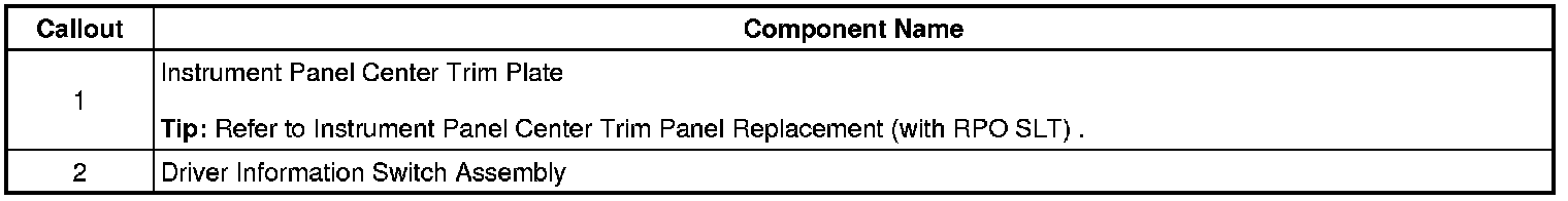 Driver Information Display Switch Replacement (with RPO SLT)