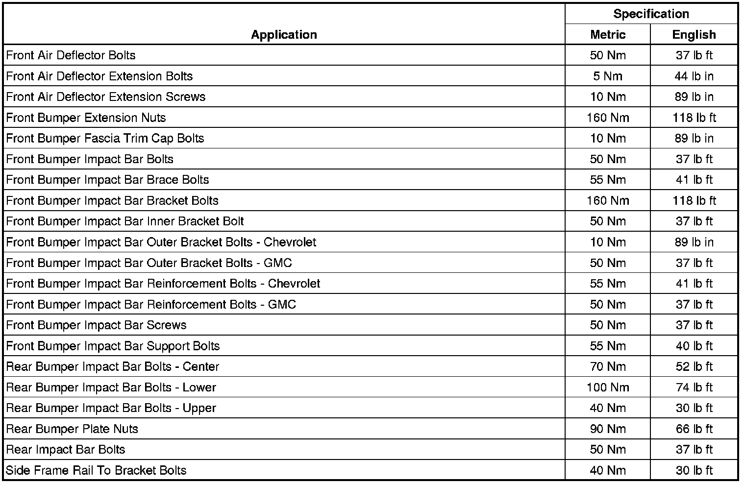 Fastener Tightening Specifications