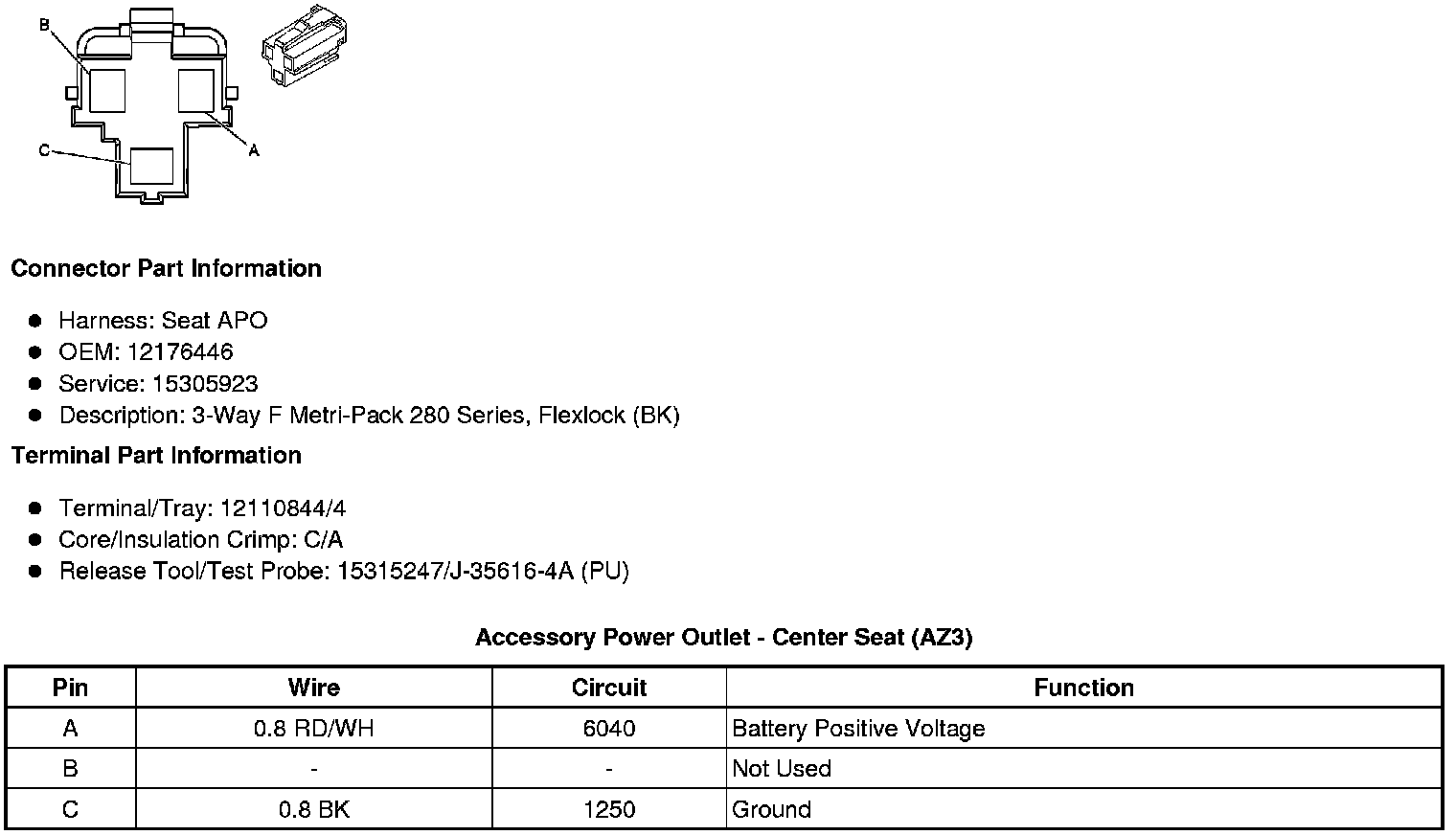 Accessory Power Outlet - Center Seat (AZ3)