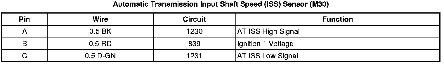 Automatic Transmission Input Shaft Speed (ISS) Sensor (M30)