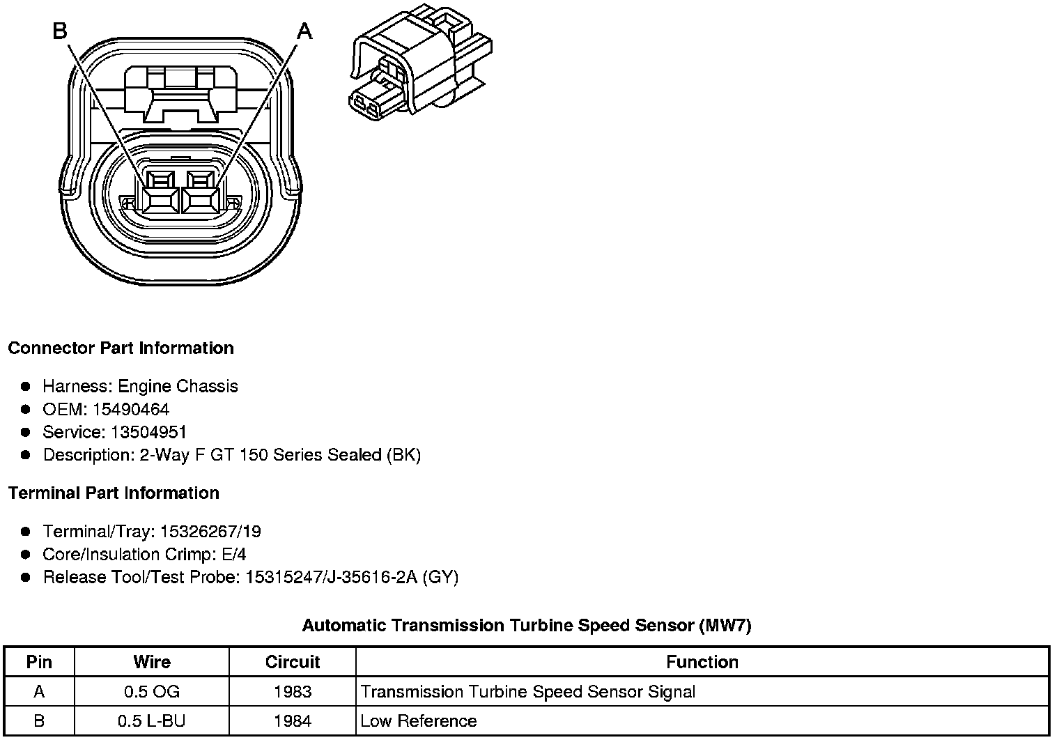 Automatic Transmission Turbine Speed Sensor (MW7)