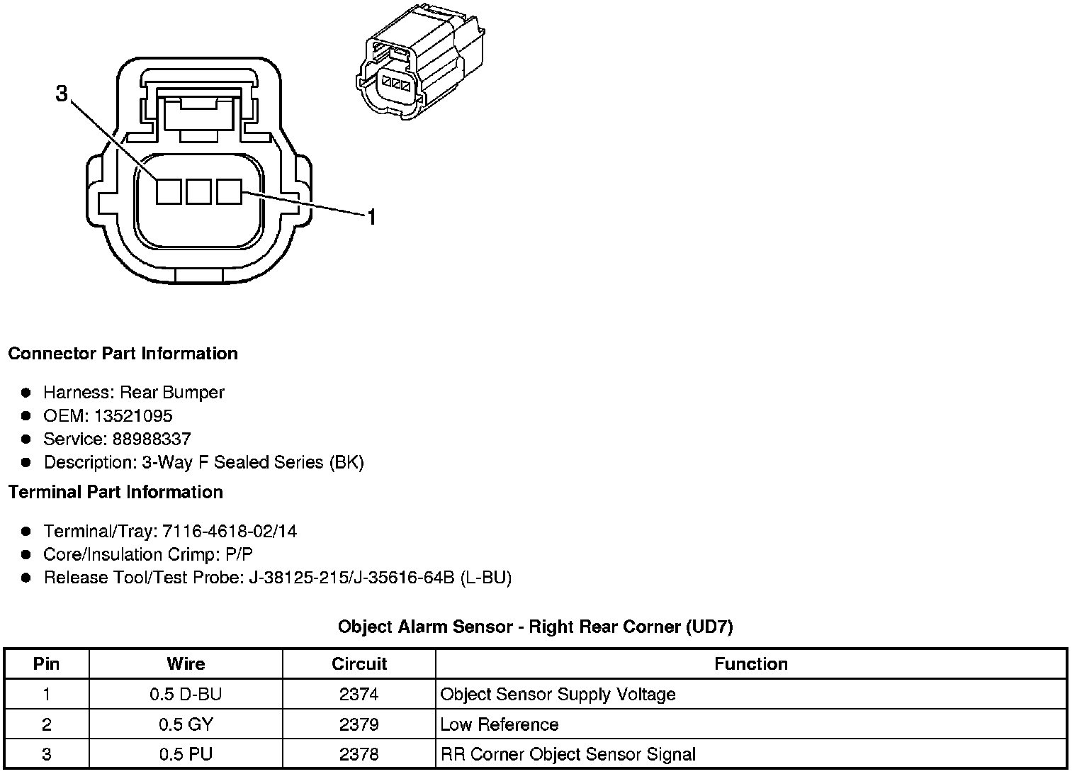 Object Alarm Sensor - Right Rear Corner (UD7)