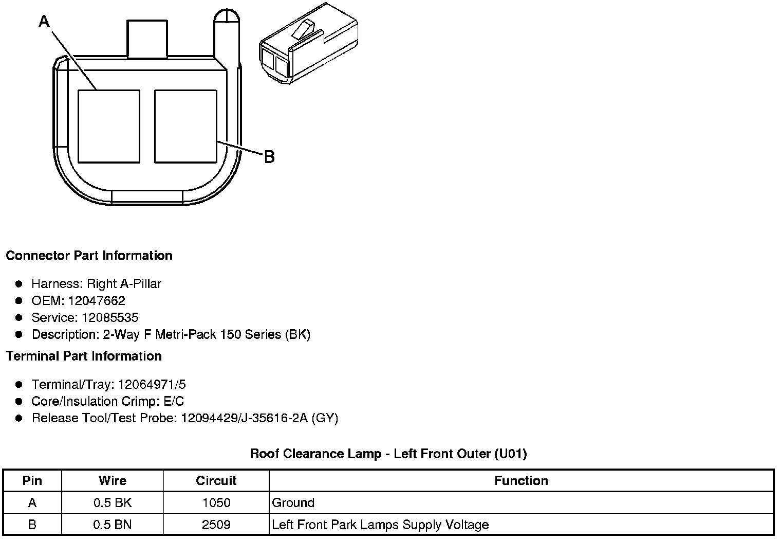 Roof Clearance Lamp - Left Front Outer (U01)