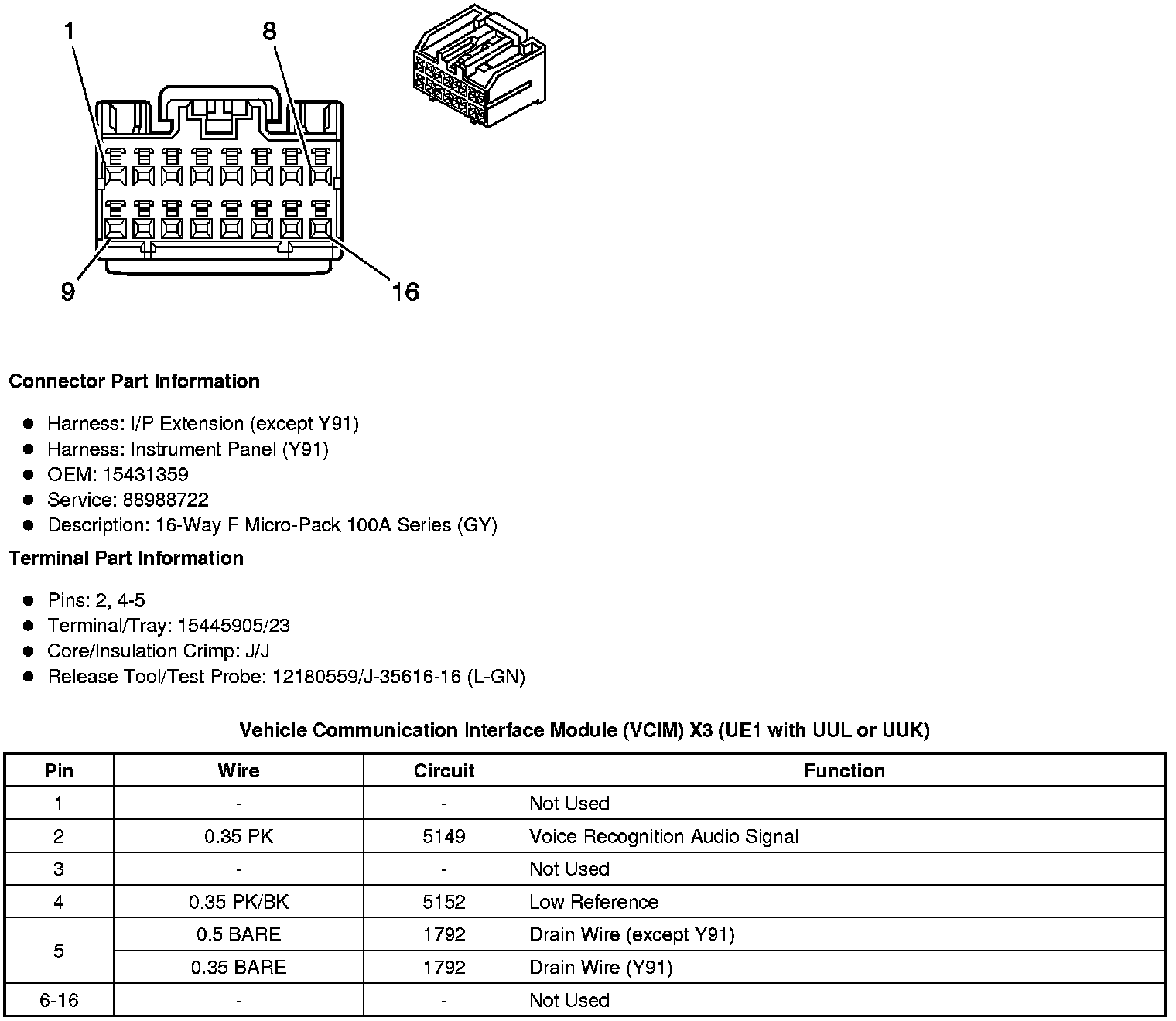 Vehicle Communication Interface Module (VCIM) X3 (UE1 with UUL or UUK)