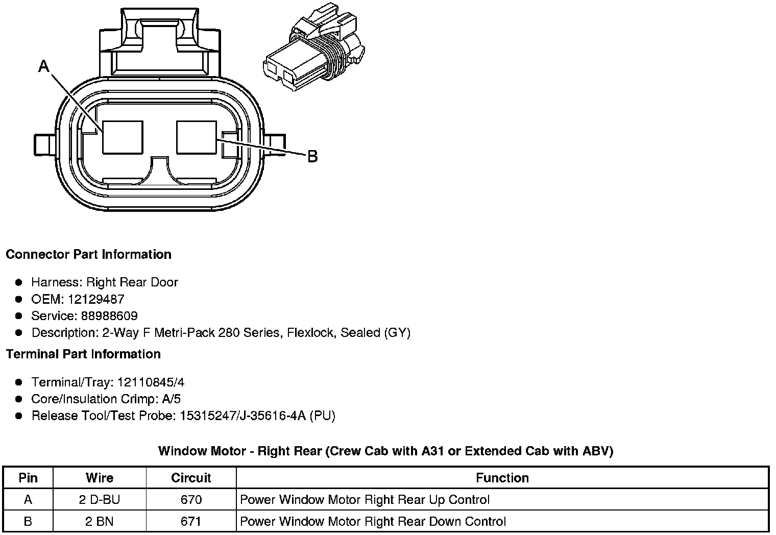 Window Motor - Right Rear (Crew Cab with A31 or Extended Cab with ABV)