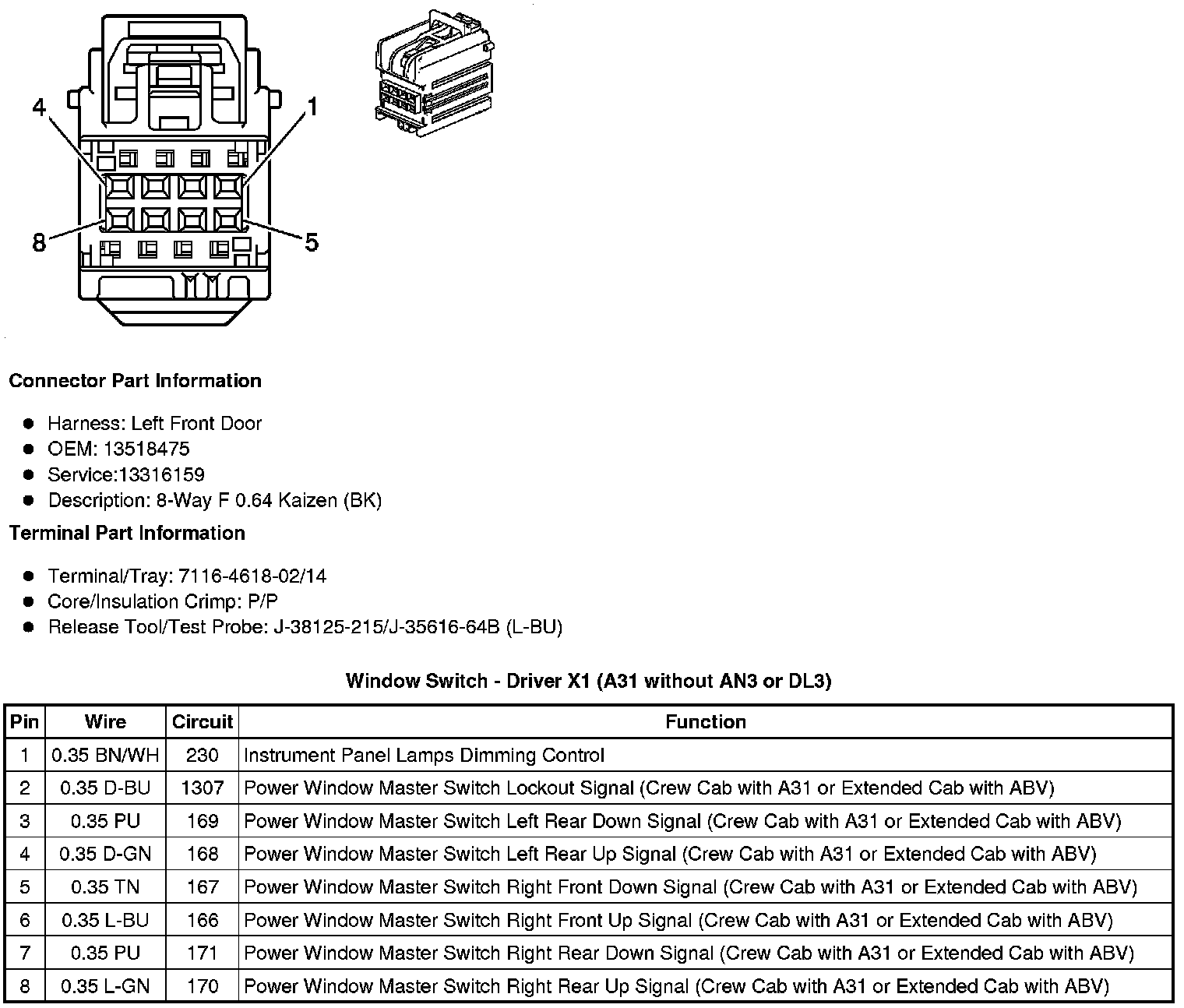 Window Switch - Driver X1 (A31 without AN3 or DL3)