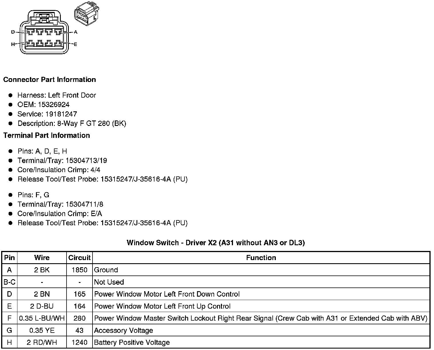 Window Switch - Driver X2 (A31 without AN3 or DL3)
