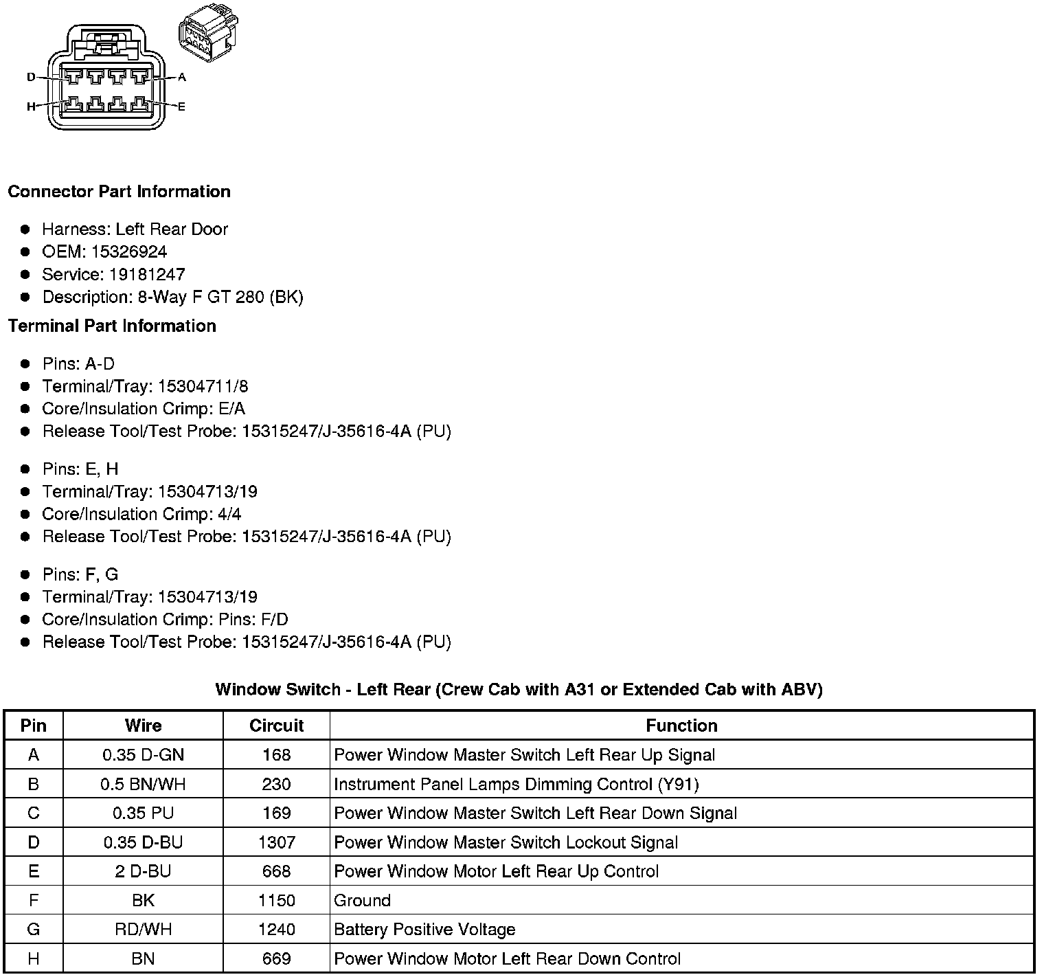 Window Switch - Left Rear (Crew Cab with A31 or Extended Cab with ABV)