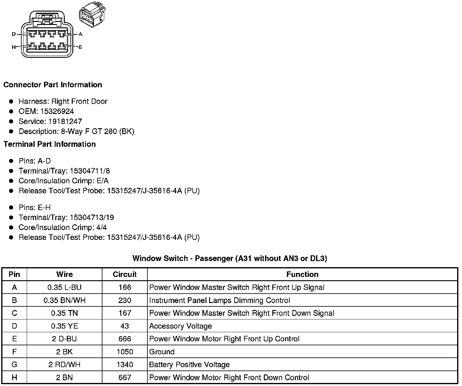 Window Switch - Passenger (A31 without AN3 or DL3)