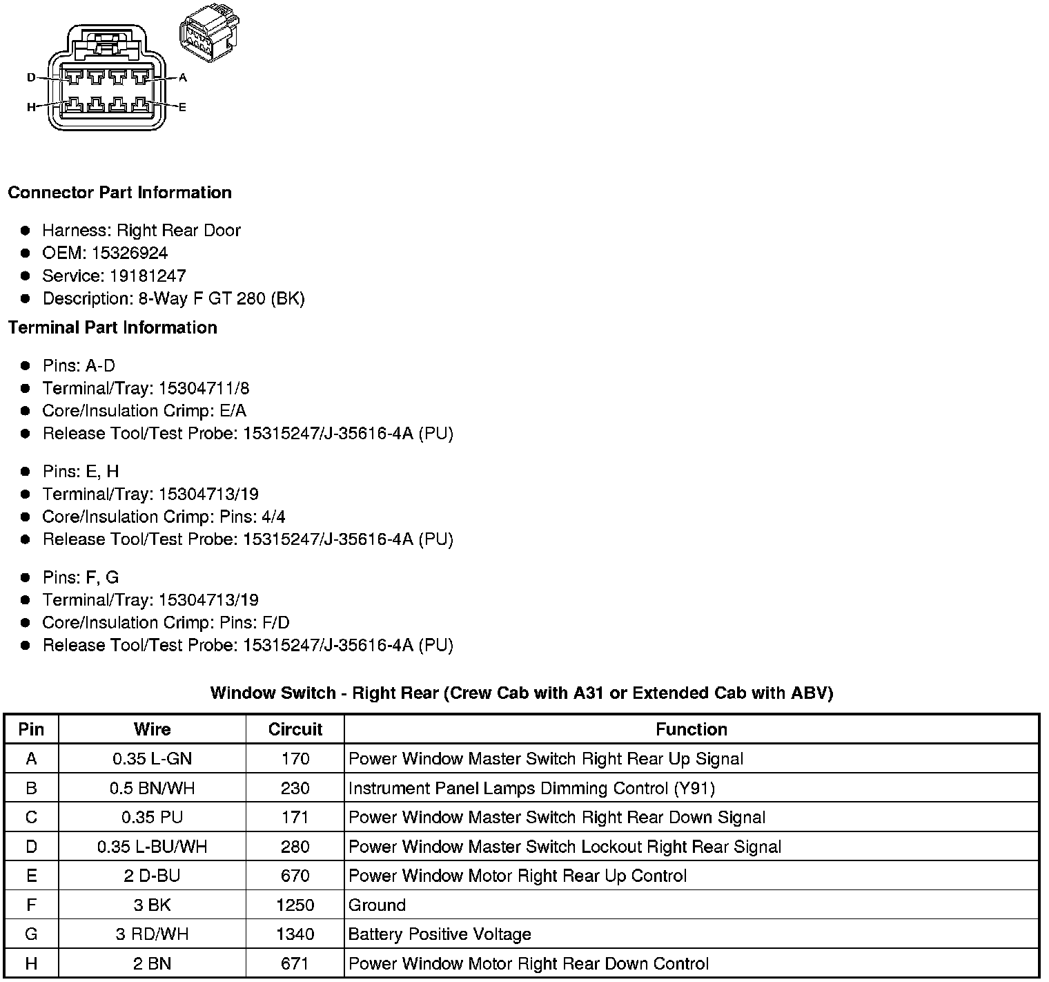 Window Switch - Right Rear (Crew Cab with A31 or Extended Cab with ABV)