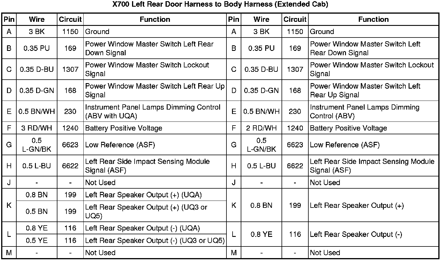 X700 Left Rear Door Harness to Body Harness (Extended Cab)