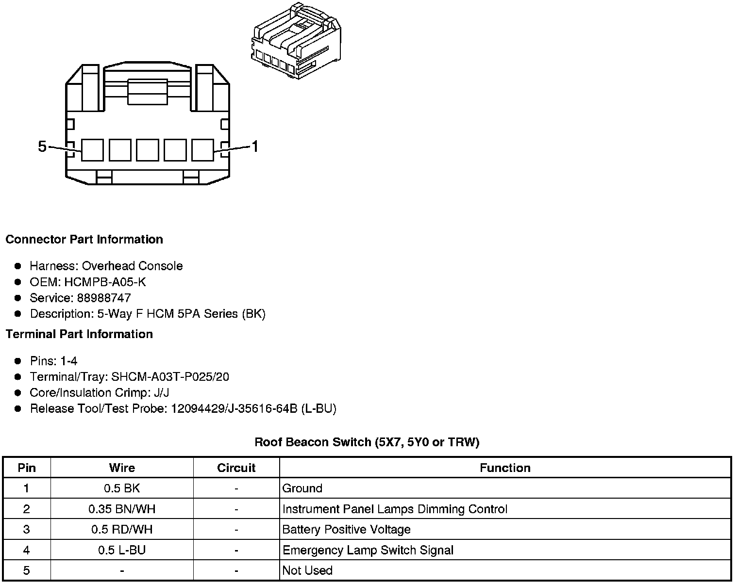 Roof Beacon Switch (5X7, 5Y0 or TRW)