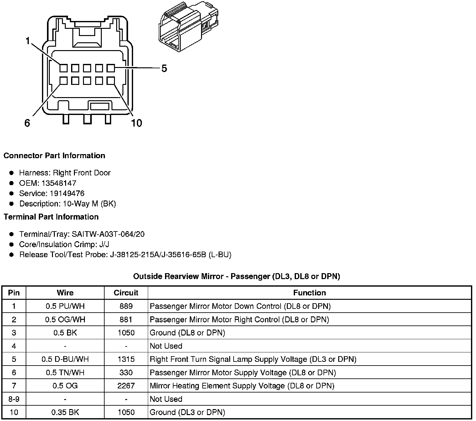 Outside Rearview Mirror - Driver (DL3, DL8 or DPN)