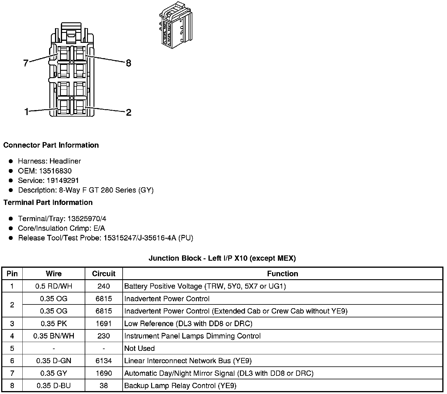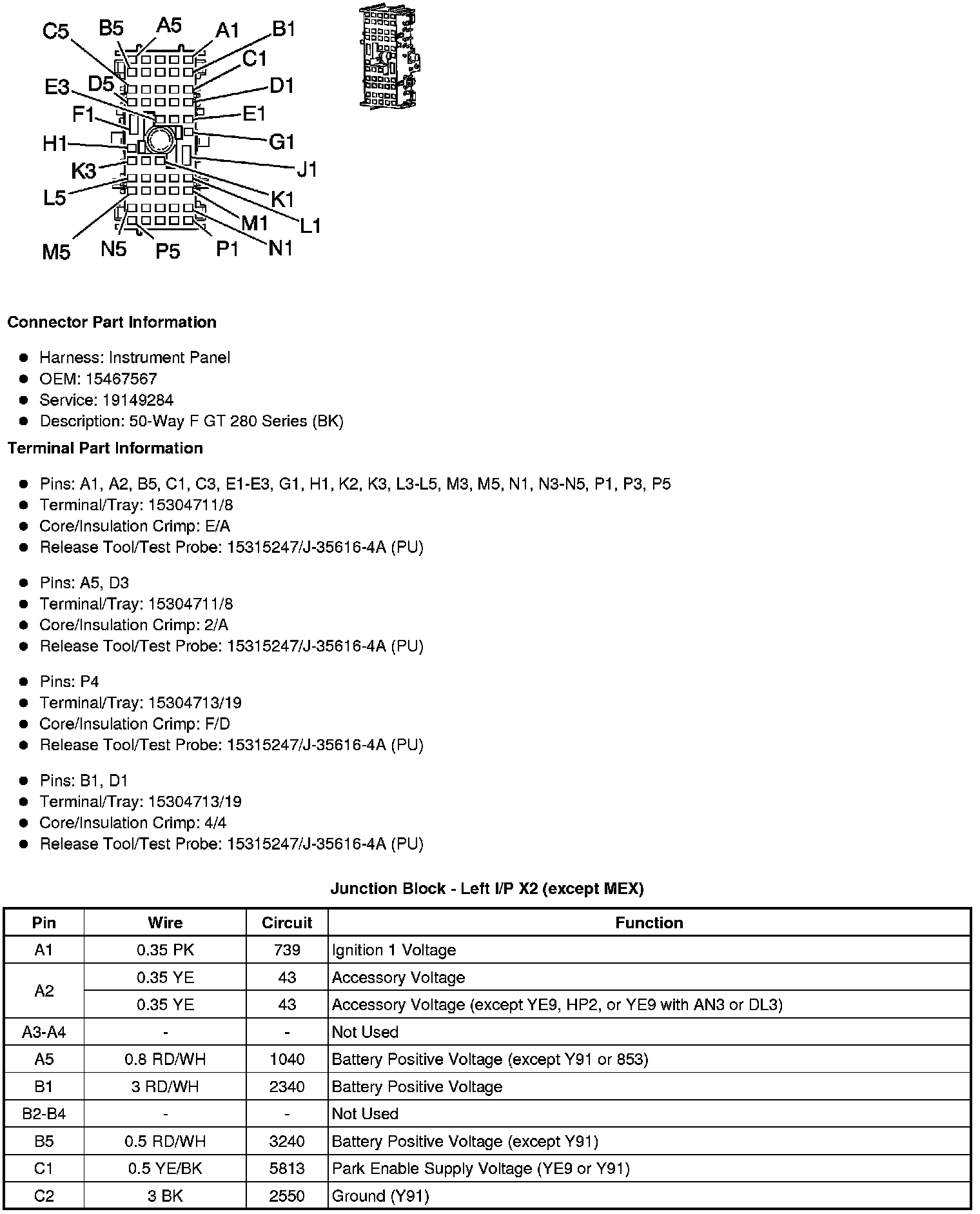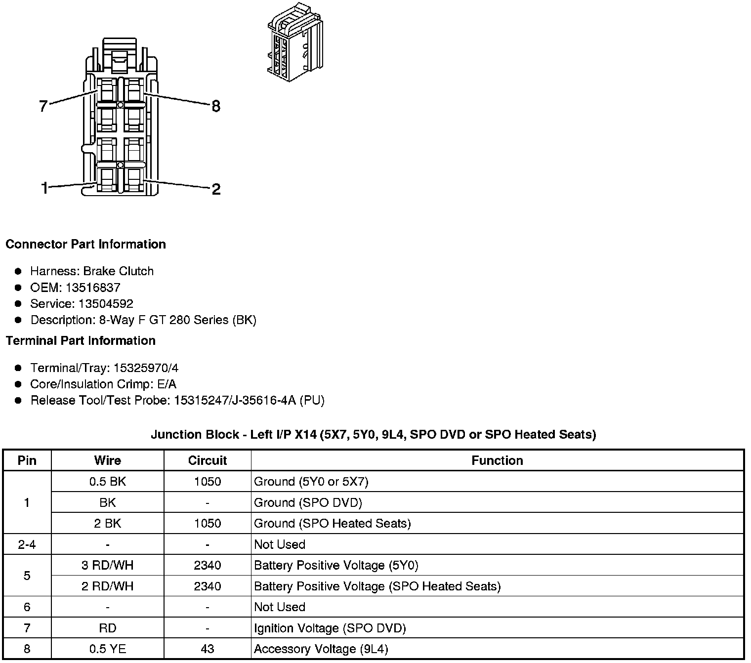 Junction Block - Left I/P X14 (RPO 5X7, 5Y0, 9L4, SPO DVD or SPO Heated Seats)