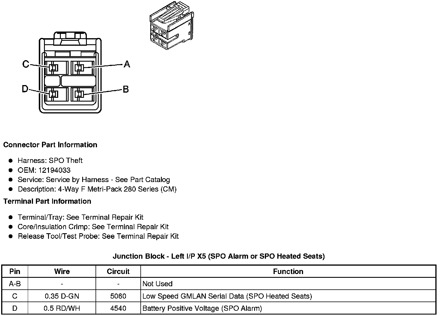 Junction Block - Left I/P X5 (SPO Alarm or SPO Heated Seats)