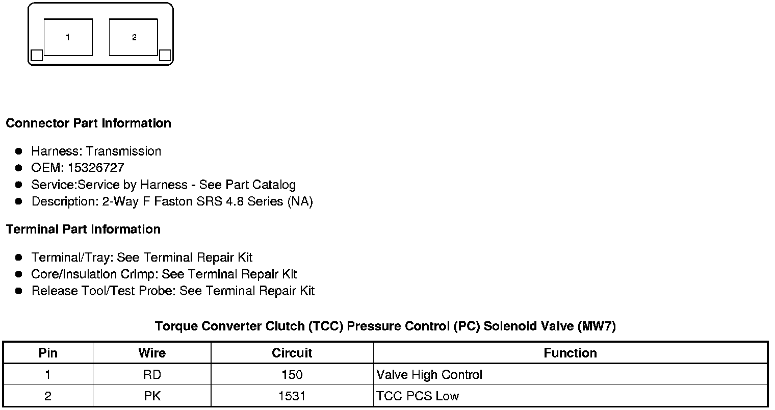 Torque Converter Clutch (TCC) Pressure Control (PC) Solenoid Valve (MW7)