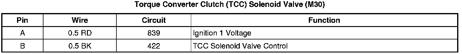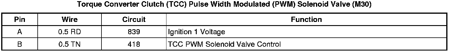 Torque Converter Clutch (TCC) Pulse Width Modulated (PWM) Solenoid Valve (M30)