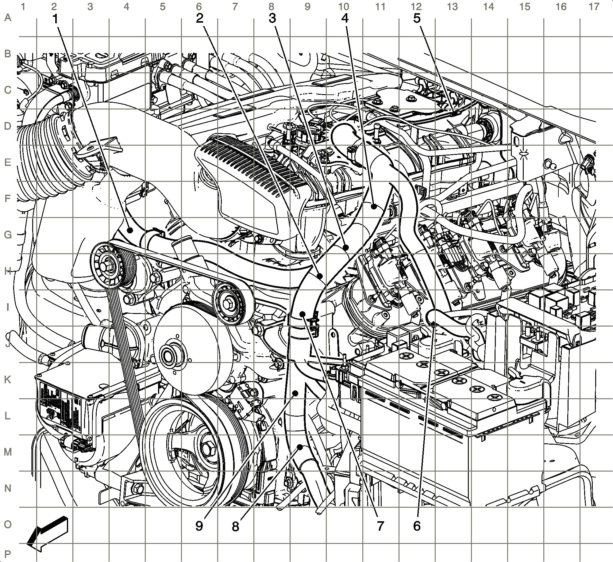Engine Chassis Harness Routing - Top Front (Diesel)