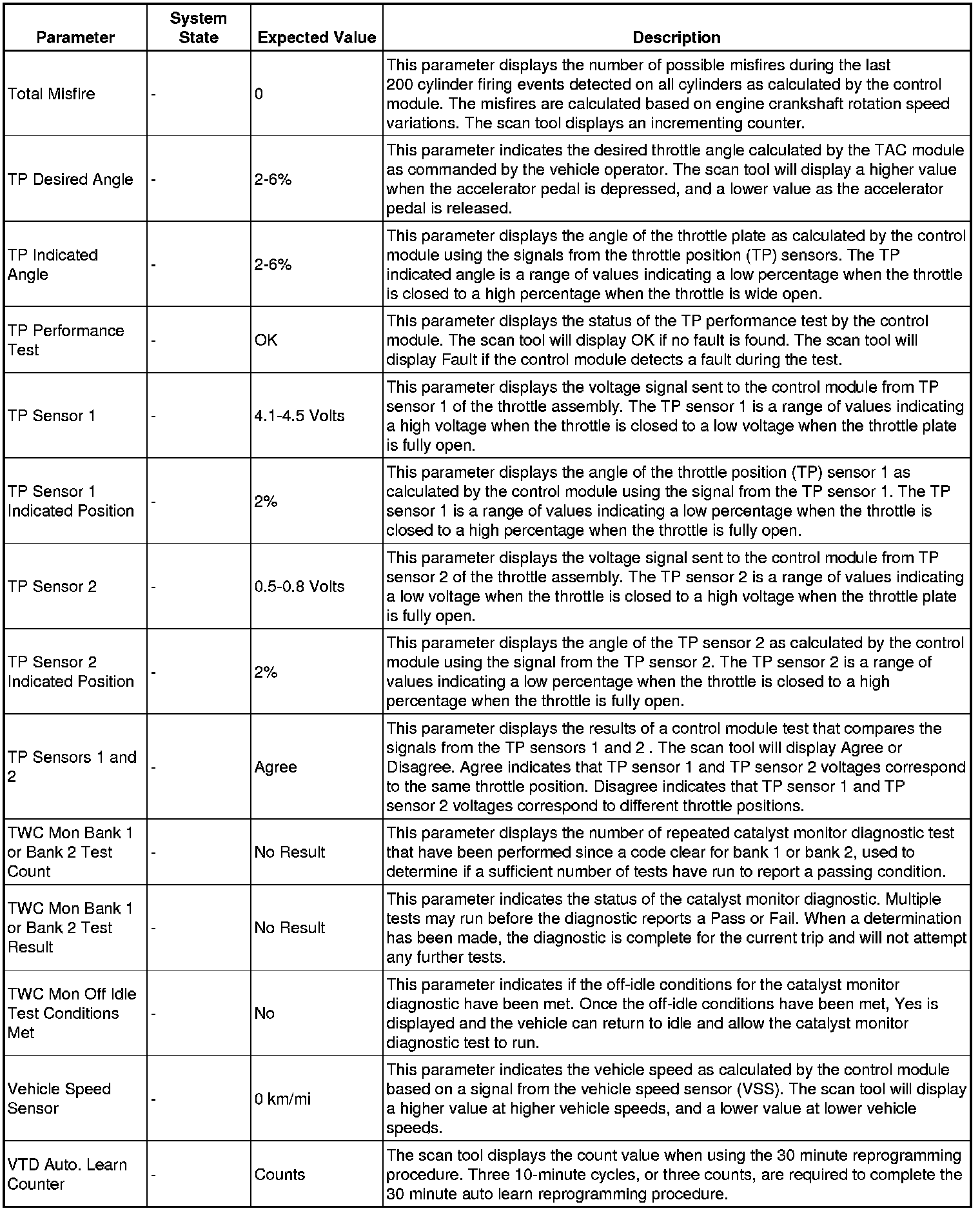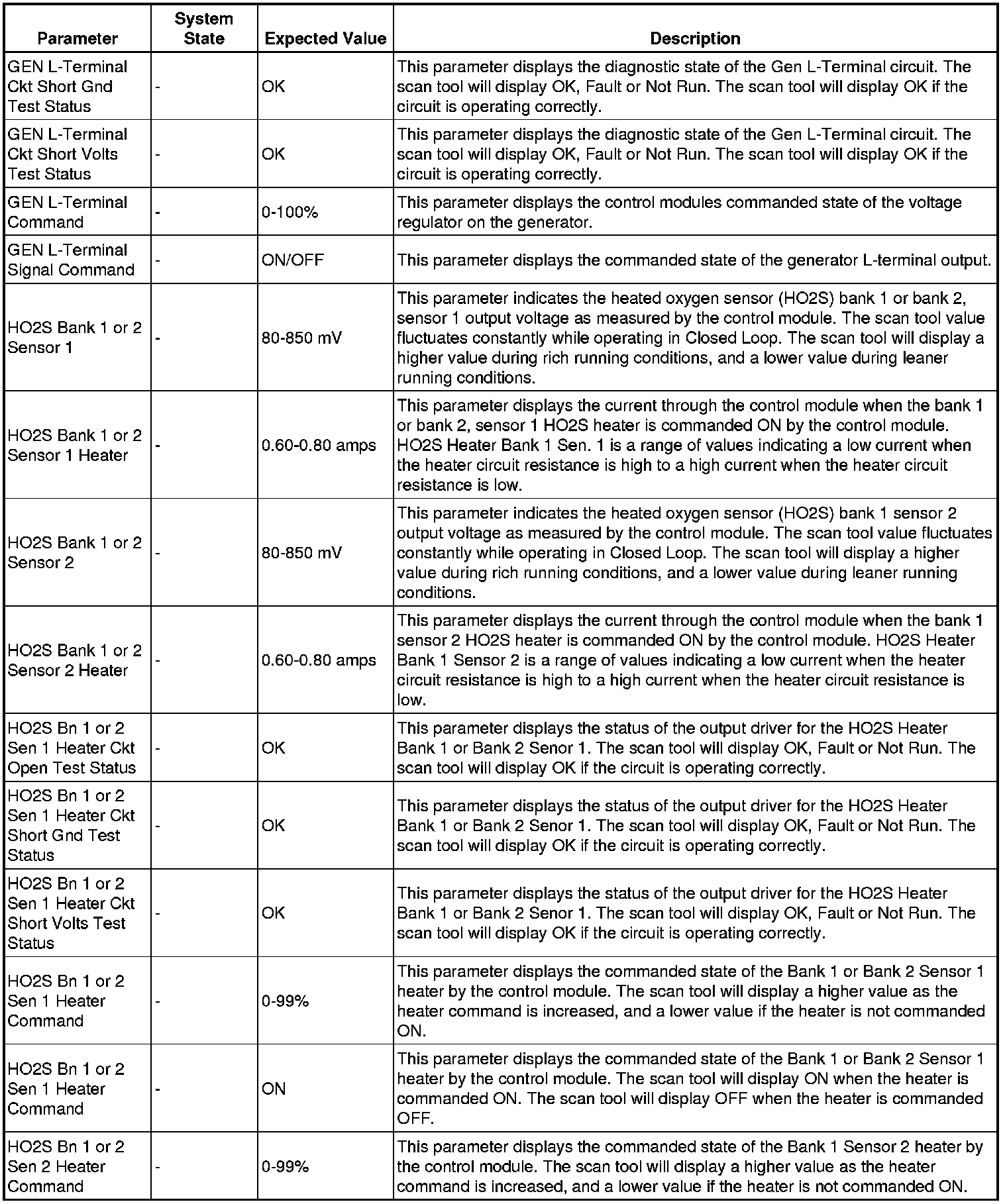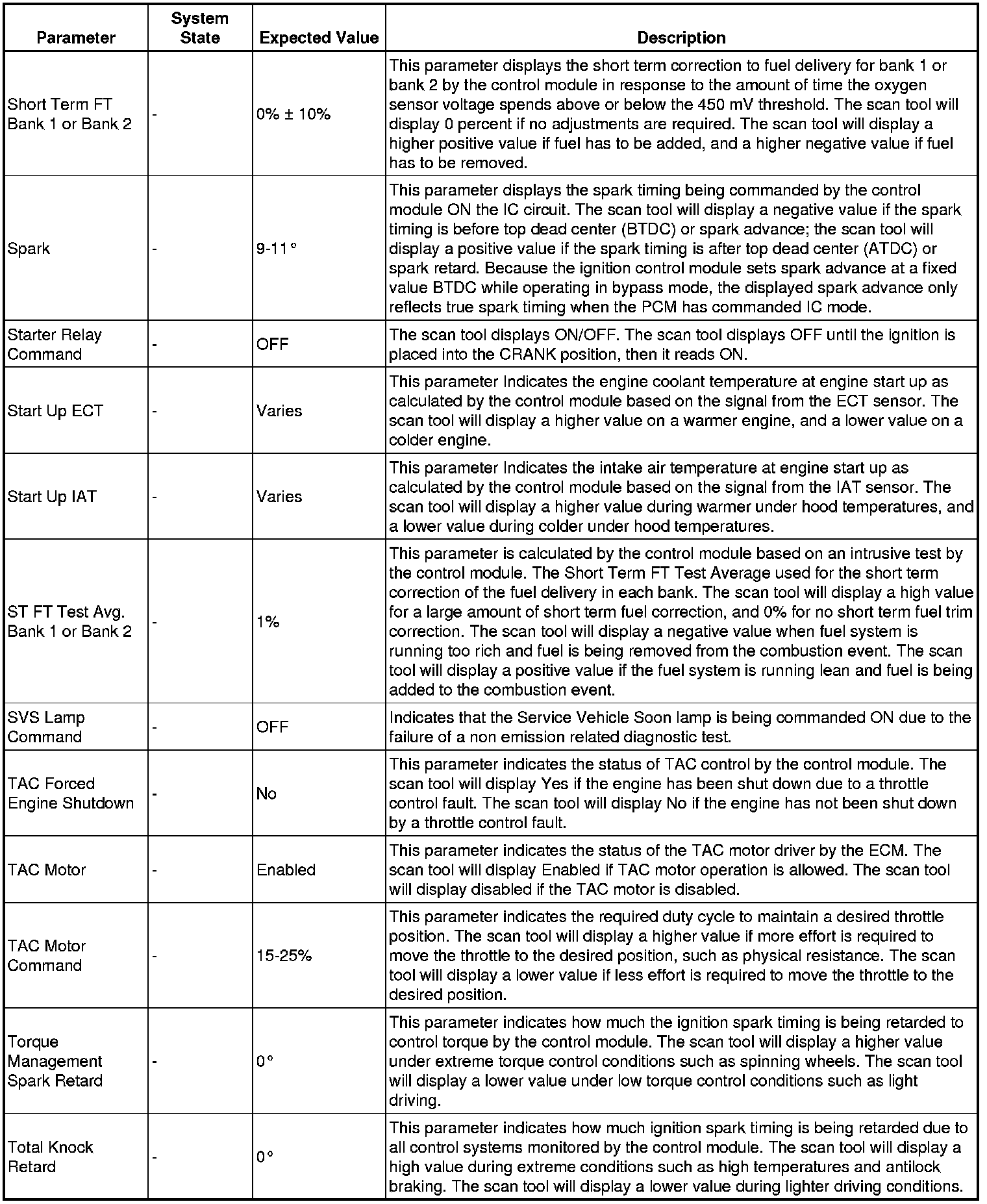 The Engine Control Module Scan Tool Data List contains all engine-related parameters that are available on the scan tool. The list is arranged in alphabetical order. A given parameter may appear in any one of the data lists, and in some cases may appear more than once, or in more than one data list in order to group certain related parameters together.