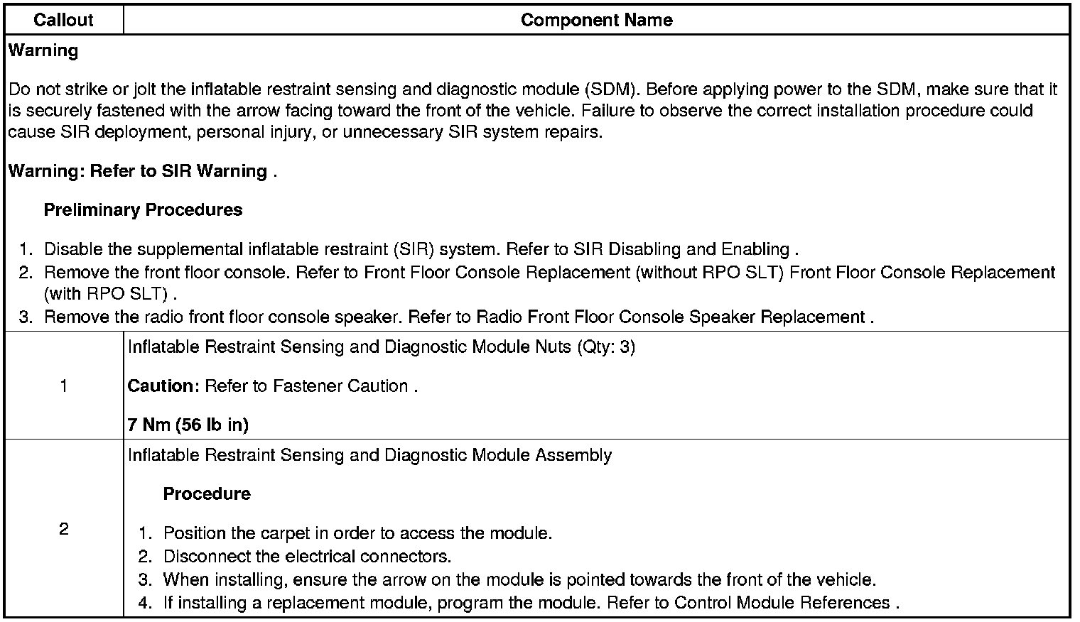 Inflatable Restraint Sensing and Diagnostic Module Replacement
