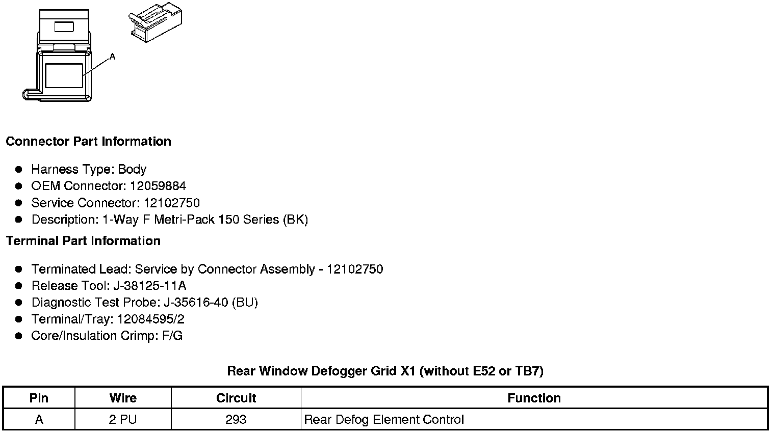 Rear Window Defogger Grid X1 (without E52 or TB7)