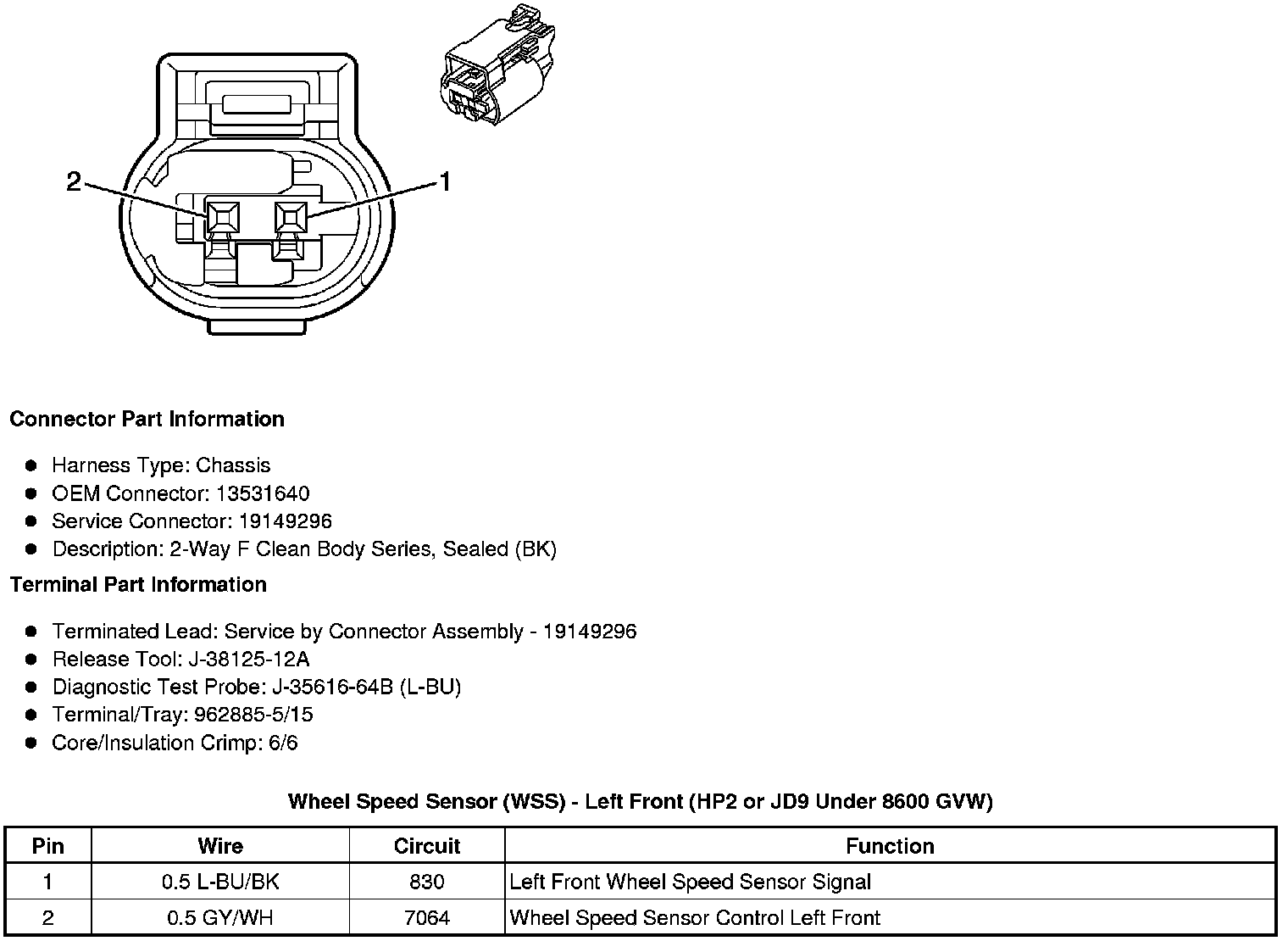 Wheel Speed Sensor (WSS) - Left Front (HP2 or JD9 Under 8600 GVW)