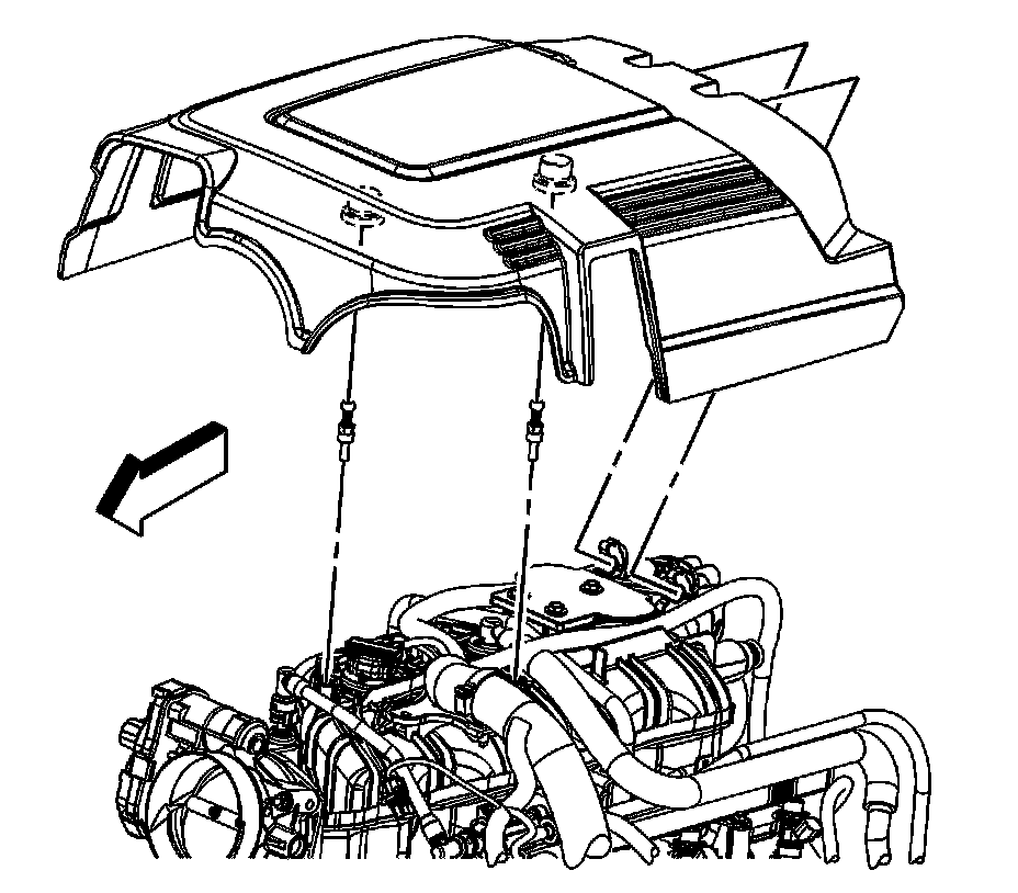 2. Grasp the front of the intake manifold sight shield and lift up disengaging the grommets from the studs.
