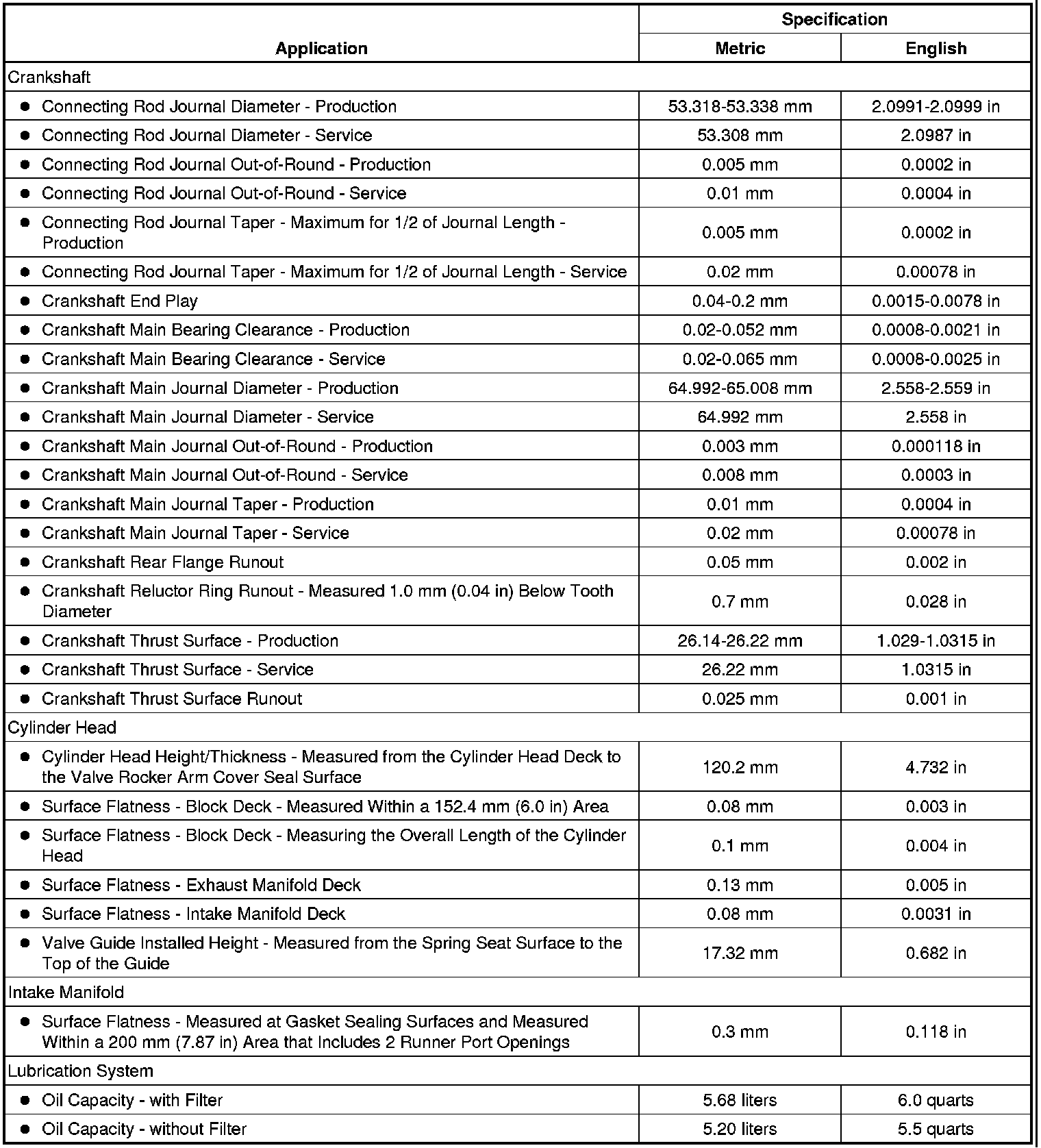 Engine Mechanical Specifications (RPO L96 VIN G)