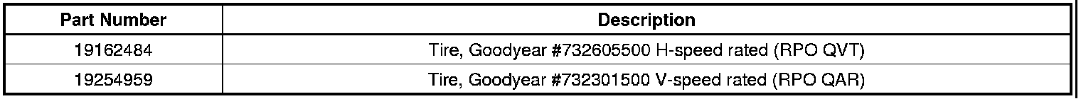 Chevrolet Tahoe Police Pursuit Vehicles built before January 17th, 2011 were equipped with Goodyear H-speed rated tires (RPO QVT) (GM P/N 19162484). Vehicles produced after this date are equipped with Goodyear V-speed rated tires (RPO QAR) (GM P/N 19254959). Vehicles originally equipped with H-speed rated tires should continue to be serviced with H-speed rated tires until stock of this tire is depleted.