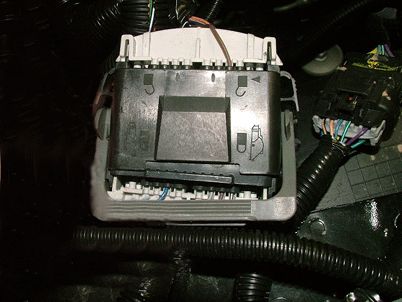 4. Locate the jumper harness loop connector that plugs into the bottom back of the junction block.
