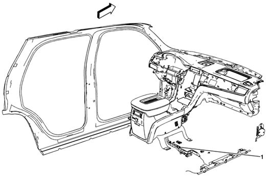 3. Locate the junction block (1) on the driver side of the vehicle under the instrument panel (IP).