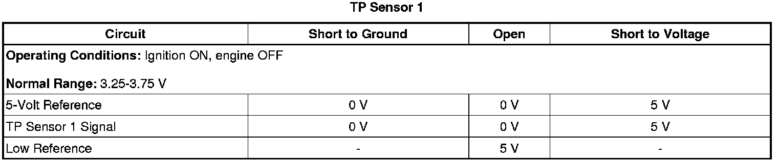 - Throttle Position (TP) Sensor 1 Circuit Low Voltage