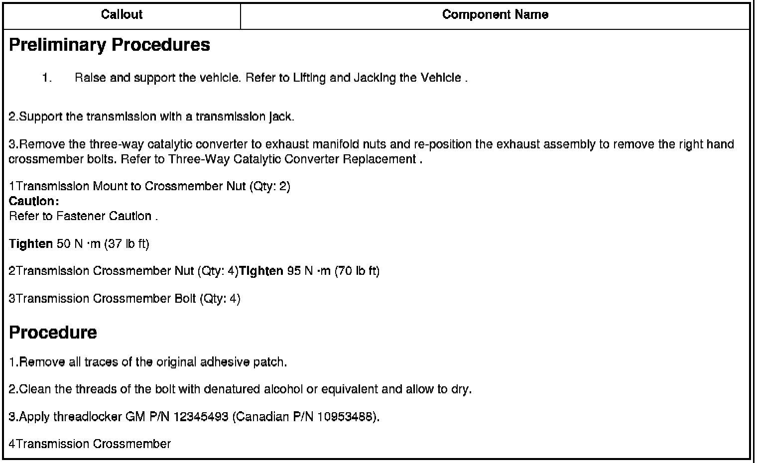 2Transmission Crossmember Nut (Qty: 4)Tighten 95 N �m (70 lb ft)