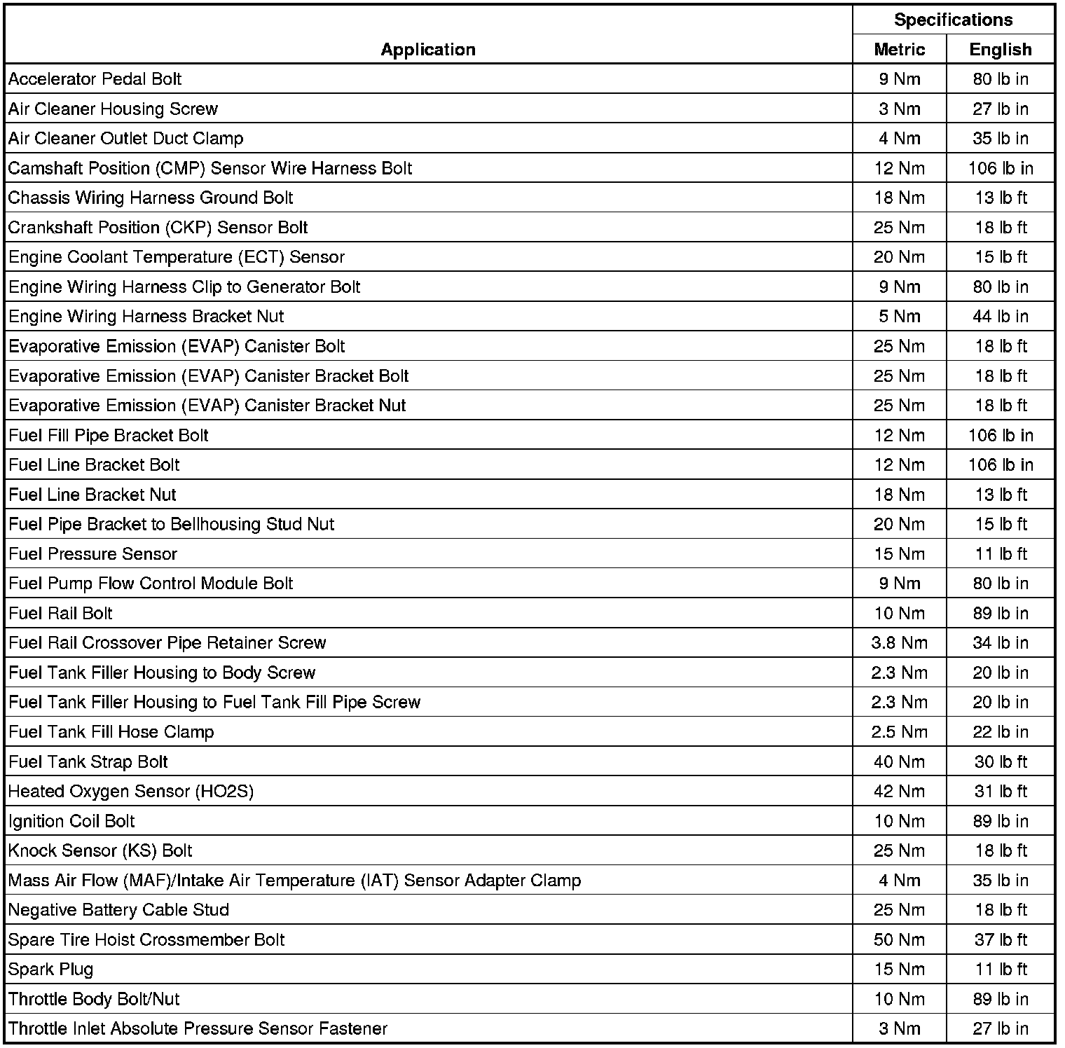 Fastener Tightening Specifications
