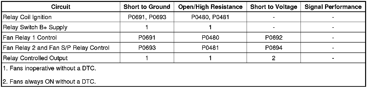 DTC P0480, P0481, P0691, P0692, P0693, or P0694