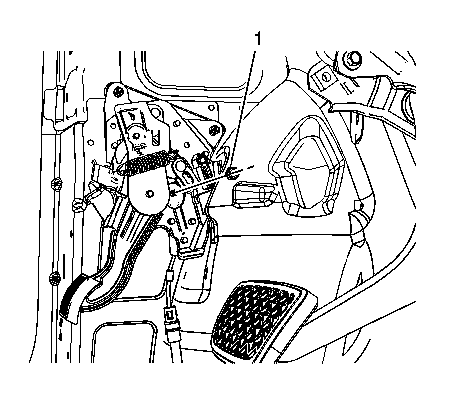 10. Remove the lower park brake pedal nut (1).