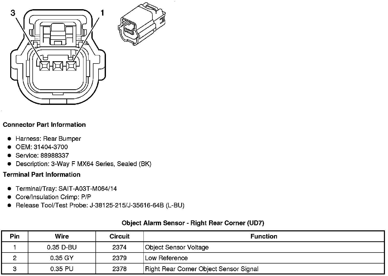 Object Alarm Sensor - Right Rear Corner (UD7)