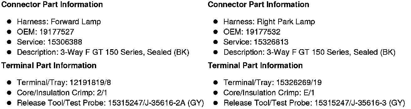 X122 Forward Lamp Harness to Right Park Lamp Harness (X88)