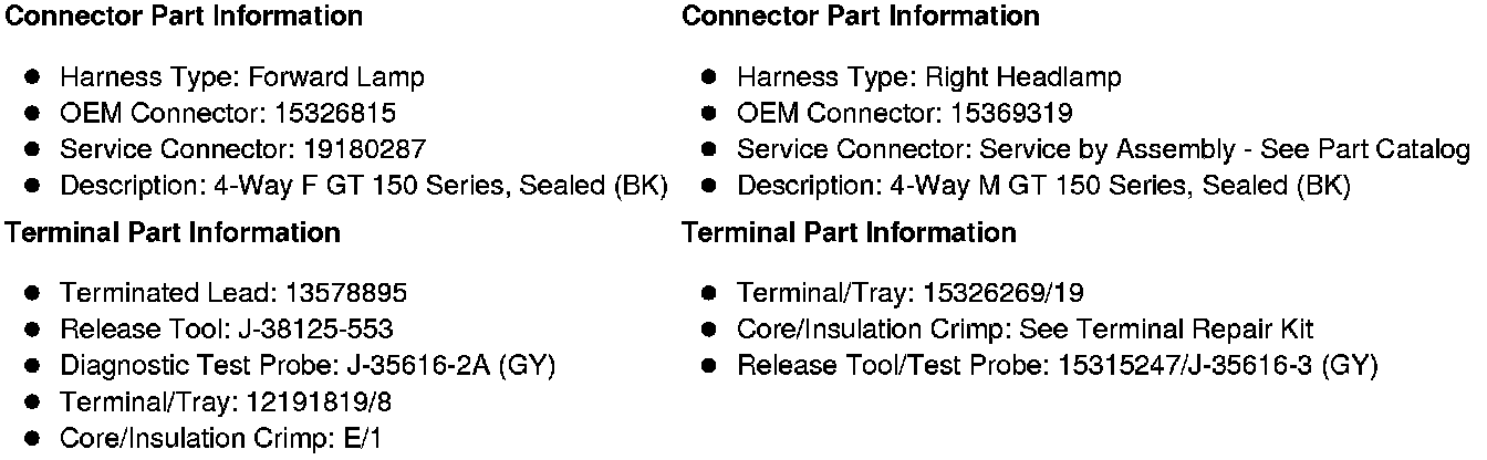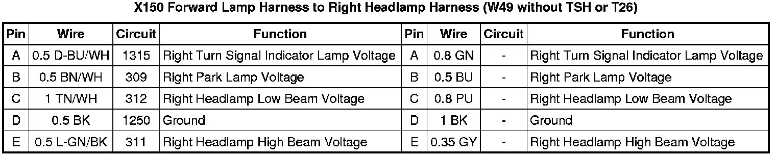 X150 Forward Lamp Harness to Right Headlamp Harness (W49 without TSH or T26)