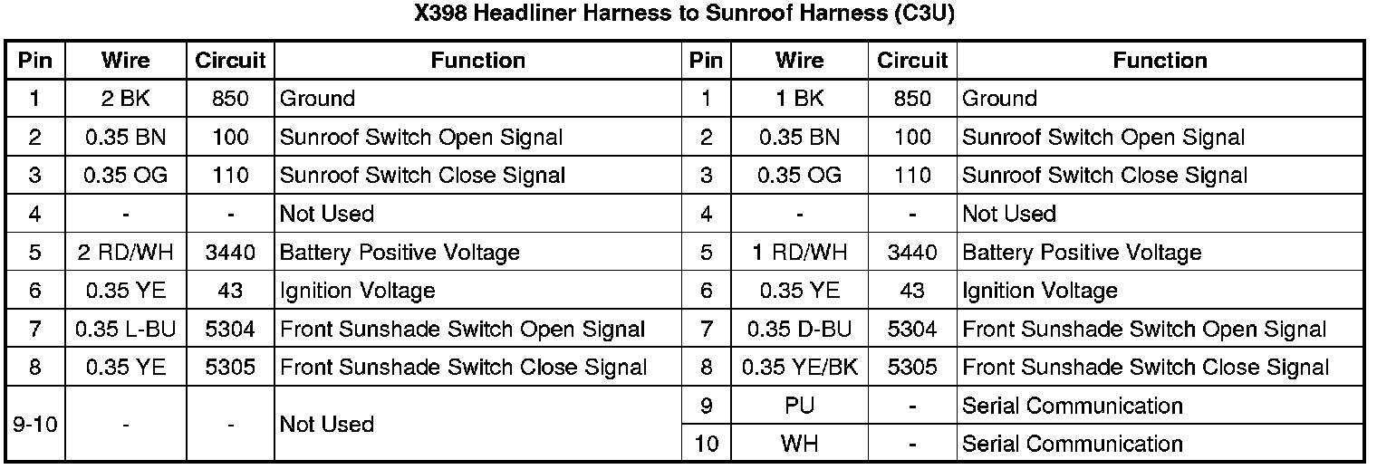 X398 Headliner Harness to Sunroof Harness (C3U)