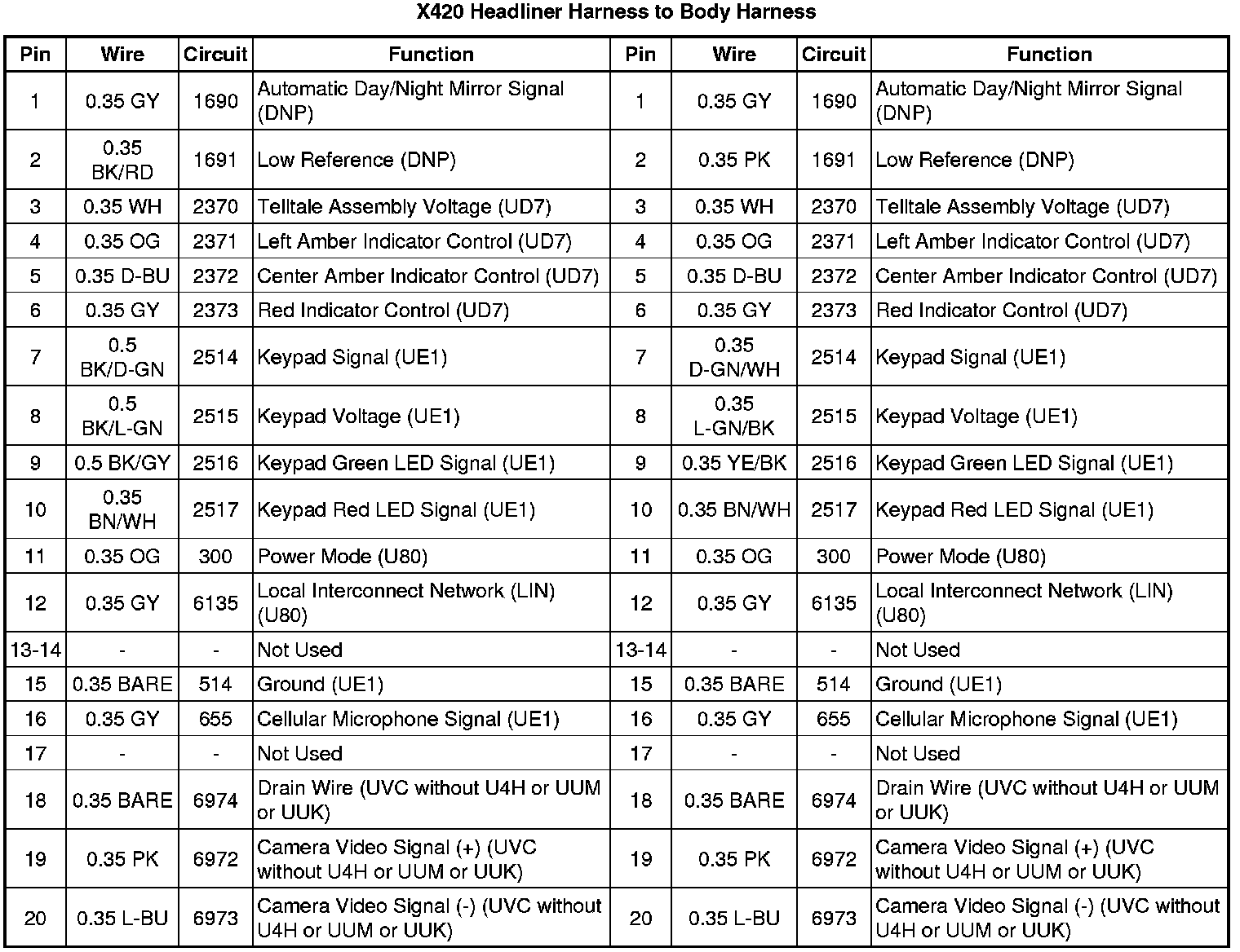 X420 Headliner Harness to Body Harness