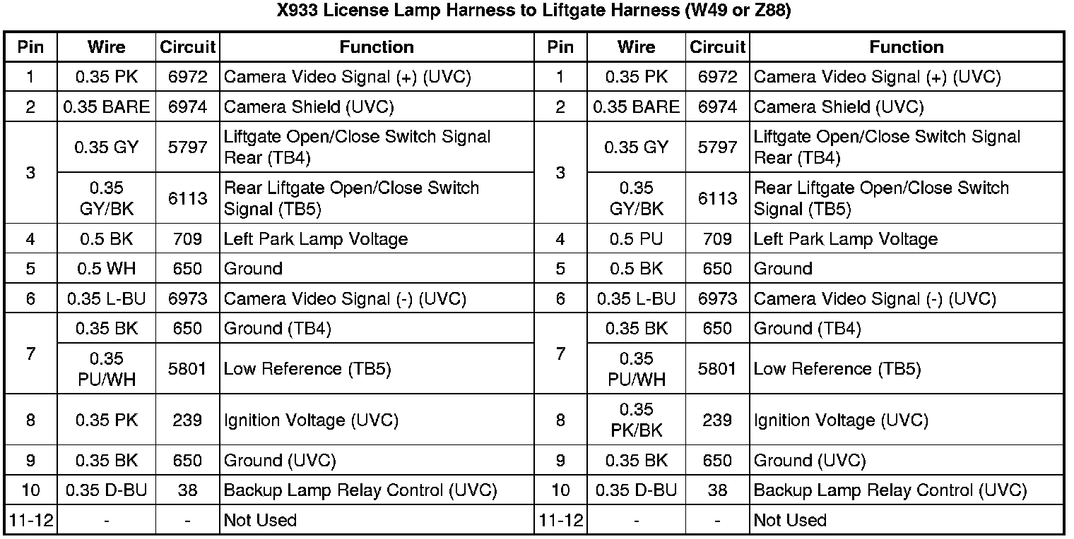 X933 License Lamp Harness to Liftgate Harness (W49 or Z88)