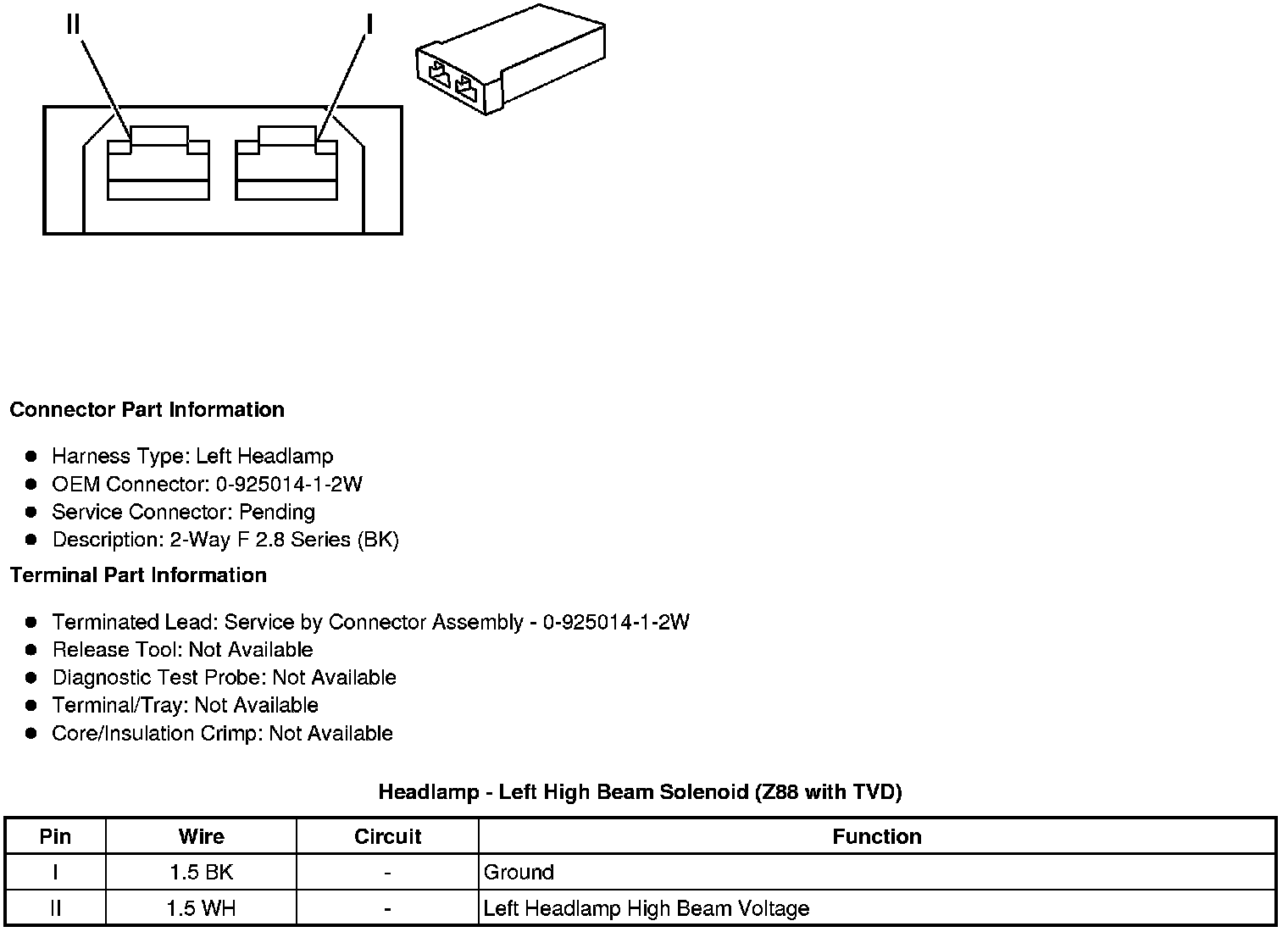 Headlamp - Left High Beam Solenoid (Z88 with TVD)