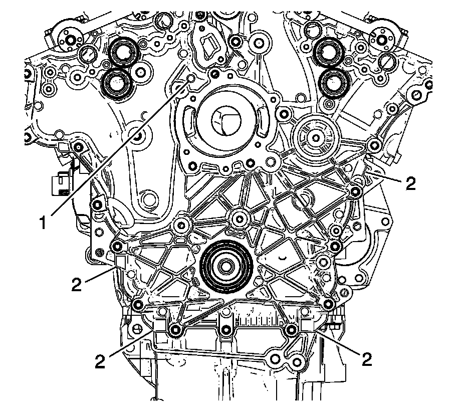 Caution: Do not use the jackscrew hole without first removing all engine front cover bolts. Failure to remove all engine front cover bolts before using the jackscrew hole could result in damage to components.