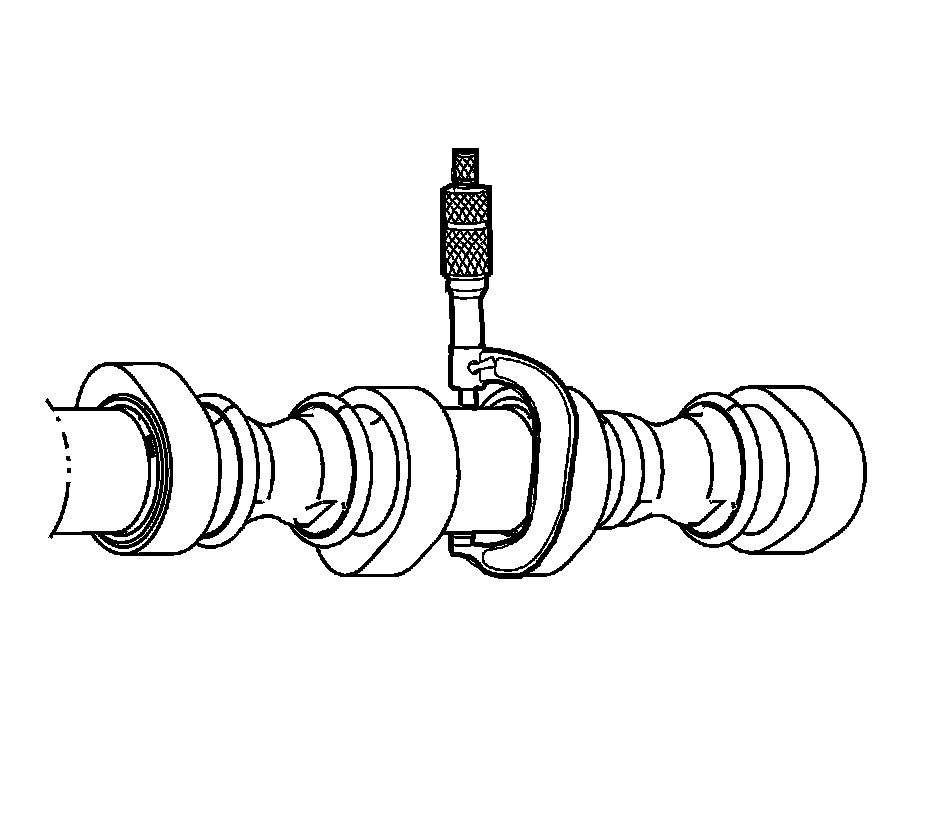 2. Measure the camshaft journals for diameter and out-of-round using an outside micrometer. Refer to Engine Mechanical Specifications (Service Limits & General Specifications).