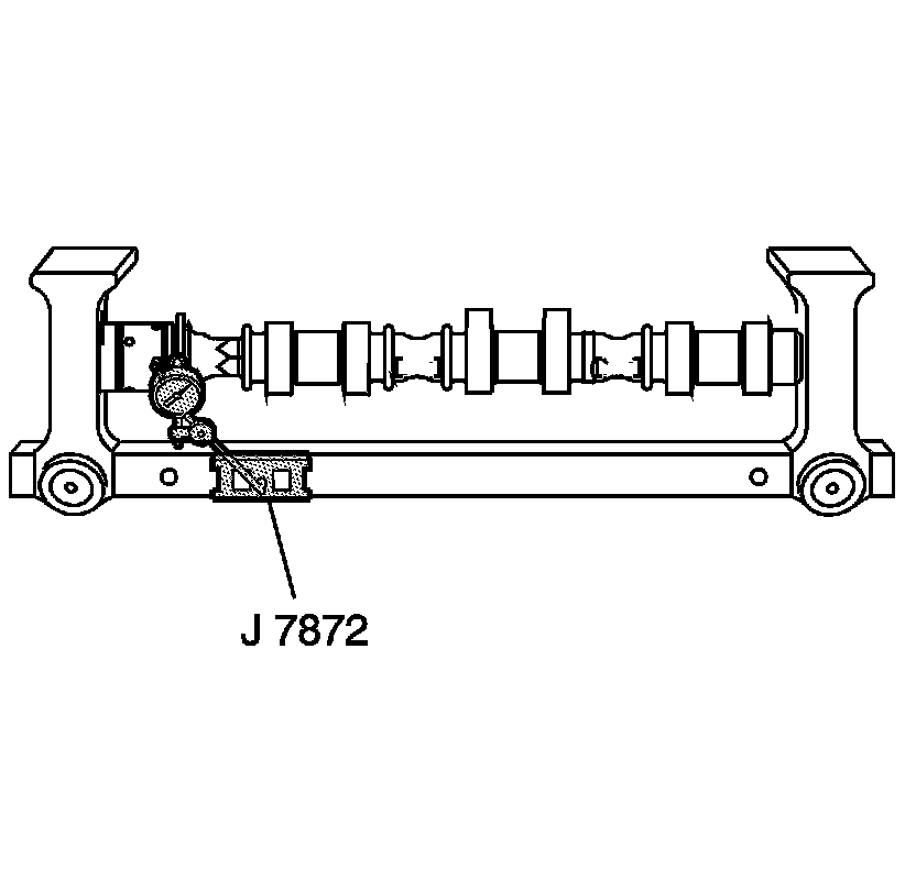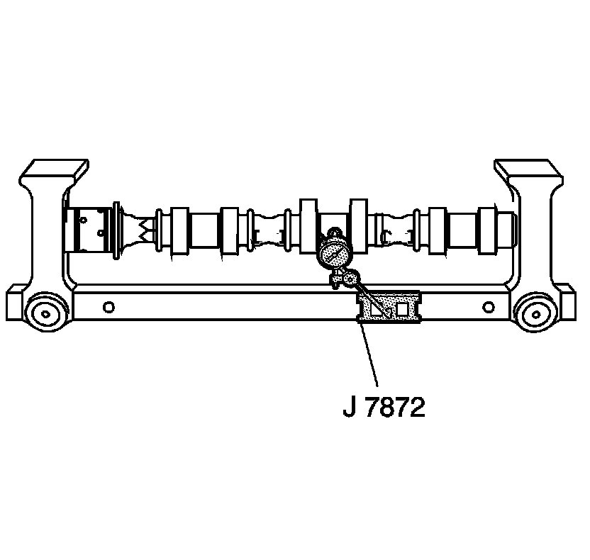 3. Measure the camshaft runout using the J 7872 - indicator. Refer to Engine Mechanical Specifications (Service Limits & General Specifications).