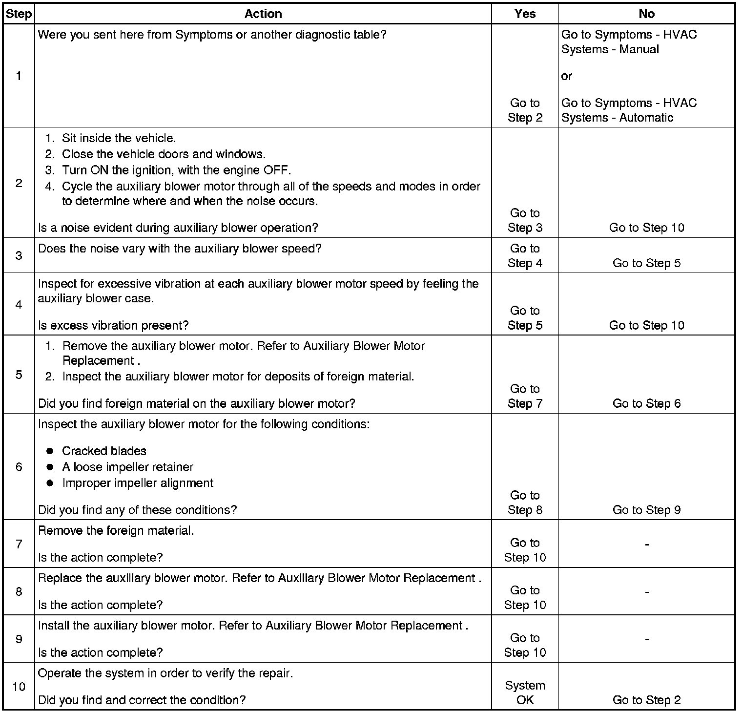 Noise Diagnosis - Auxiliary Blower Motor