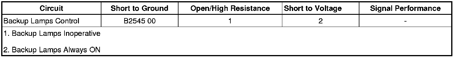 4. Command the Backup Lamps ON and OFF with a scan tool. The test lamp should turn ON and OFF when changing between the commanded states.